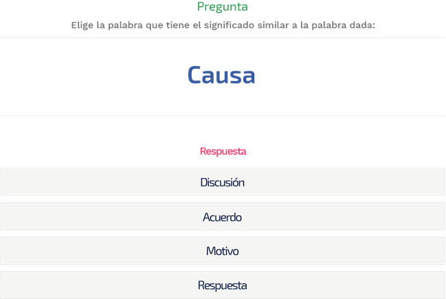 Ejemplo de una pregunta del Test de Sinónimos. Da clic aquí para ir a un test gratis.